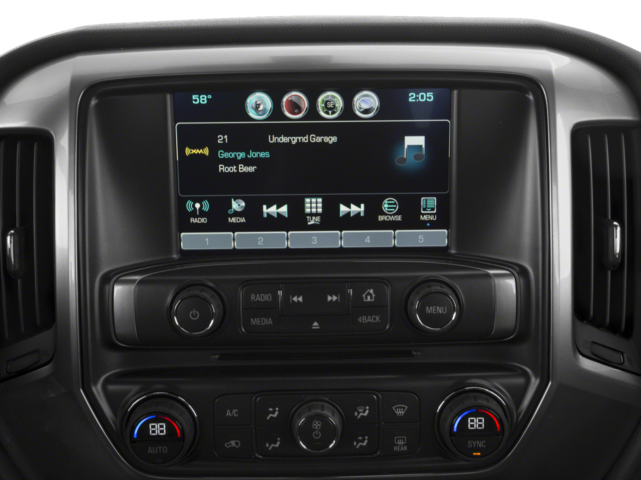 - Audio system, Chevrolet MyLink Radio with 8" diagonal color touch-screen, AM/FM stereo with seek-and-scan and digital clock, includes Bluetooth® streaming audio for music and select phones; USB ports; auxiliary jack; voice-activated technology for radio and phone; and Shop with the ability to browse, select and install apps to your vehicle. Apps include Pandora, iHeartRadio, The Weather Channel and more.