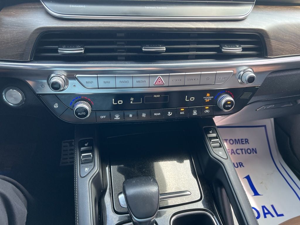 This 2022 Copper Kia Telluride SX AWD is well equipped and includes these features and benefits: Nightfall Edition Package (Black Finish Radiator Grille, Body Color Exterior Door Handles, Exclusive Black Fog Light Bezel, Exclusive Black Headlight Bezels, Front & Rear Gloss Black Finish Bumper Skid Plates, Gloss Black Finish Exterior Emblems, Gloss Black Finish Front & Rear Door Garnish, Gloss Black Finish Roof Rails, and Wheels: 20 x 7.5 Exclusive Black Alloy), SX Prestige Package (110V Inverter, Heads-Up Display, Heated & Ventilated 2nd Row Seats, Premium Cloth Headliner & Pillar Trim, Premium Nappa Leather Seat Trim, and Rain-Sensing Front Windshield Wipers), Towing Package (Self Leveling Rear Suspension and Tow Hitch w/Harness (TOF)), 10 Speakers, 3.648 Axle Ratio, 3rd row seats: split-bench, 4-Wheel Disc Brakes, ABS brakes, Air Conditioning, Alloy wheels, AM/FM radio: SiriusXM, Apple CarPlay & Android Auto, Auto High-beam Headlights, Auto-dimming Rear-View mirror, Automatic temperature control, Black Wheel Lock, Brake assist, Bumpers: body-color, Carpeted Floor Mats, Compass, Delay-off headlights, Driver door bin, Driver vanity mirror, Dual front impact airbags, Dual front side impact airbags, Electronic Stability Control, Emergency communication system: 911 Connect, Four wheel independent suspension, Front anti-roll bar, Front Bucket Seats, Front Center Armrest, Front dual zone A/C, Front fog lights, Front reading lights, Fully automatic headlights, Garage door transmitter: HomeLink, harman/kardon® Speakers, Heated & Ventilated Front Bucket Seats, Heated door mirrors, Heated front seats, Heated steering wheel, Hybrid Cargo Net, Illuminated entry, Knee airbag, Leather Seat Trim, Leather Shift Knob, Leather steering wheel, Low tire pressure warning, Memory seat, Navigation System, Occupant sensing airbag, Outside temperature display, Overhead airbag, Overhead console, Panic alarm, Passenger door bin, Passenger vanity mirror, Power door mirrors, Power driver seat, Power Liftgate, Power moonroof, Power passenger seat, Power steering, Power windows, Radio data system, Radio: AM/FM harman/kardon Audio System, Rear air conditioning, Rear anti-roll bar, Rear audio controls, Rear reading lights, Rear Seat Entertainment System, Rear window defroster, Rear window wiper, Reclining 3rd row seat, Remote keyless entry, Roof rack: rails only, Security system, Side Step Bars, Smart Key w/ Push Button and Remote Start, Speed control, Speed-sensing steering, Split folding rear seat, Spoiler, Steering wheel mounted audio controls, SX Dune Brown Nappa Leather Seats, Tachometer, Telescoping steering wheel, Tilt steering wheel, Traction control, Trip computer, Turn signal indicator mirrors, Variably intermittent wipers, Ventilated front seats, and Wheels: 20 x 7.5 Black Alloy.