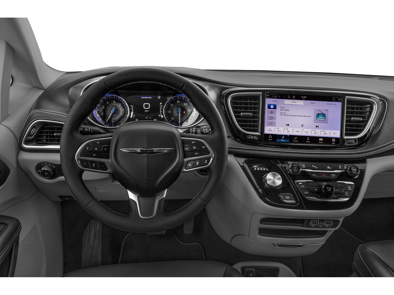 This 2024 Diamond Black Crystal Pearlcoat Chrysler Pacifica Touring L FWD is well equipped and includes these features and benefits: Quick Order Package 27L, 10.1 Touchscreen Display, 17 x 7.0 Aluminum Wheels, 3.25 Axle Ratio, 3rd row seats: split-bench, 4-Wheel Disc Brakes, 6 Speakers, ABS brakes, Air Conditioning, Alloy wheels, AM/FM radio: SiriusXM, Apple CarPlay, Apple CarPlay/Android Auto, Automatic temperature control, Black Seats, Brake assist, Bumpers: body-color, Caprice Leatherette Bucket Seats, Compass, Delay-off headlights, Disassociated Touchscreen Display, Driver door bin, Driver vanity mirror, Driver's Seat Mounted Armrest, Dual front impact airbags, Dual front side impact airbags, Electronic Stability Control, Four wheel independent suspension, Front anti-roll bar, Front Bucket Seats, Front dual zone A/C, Front fog lights, Front reading lights, Fully automatic headlights, Google Android Auto, GPS Antenna Input, Heated door mirrors, Heated front seats, Heated steering wheel, Illuminated entry, Integrated Active Noise Cancellation, Integrated Center Stack Radio, Knee airbag, Low tire pressure warning, Manufacturer's Statement of Origin, Memory seat, Occupant sensing airbag, Outside temperature display, Overhead airbag, Overhead console, Panic alarm, ParkView Rear Back-Up Camera, Passenger door bin, Passenger seat mounted armrest, Passenger vanity mirror, Power door mirrors, Power driver seat, Power Liftgate, Power steering, Power windows, Radio data system, Radio: Uconnect 5 w/10.1 Display, Rain sensing wipers, Rear air conditioning, Rear reading lights, Rear window defroster, Rear window wiper, Reclining 3rd row seat, Remote keyless entry, Security system, Speed control, Split folding rear seat, Spoiler, Steering wheel mounted audio controls, Tachometer, Telescoping steering wheel, Tilt steering wheel, Touring Suspension, Traction control, Trip computer, Turn signal indicator mirrors, USB Host Flip, Variably intermittent wipers, and Voltmeter.